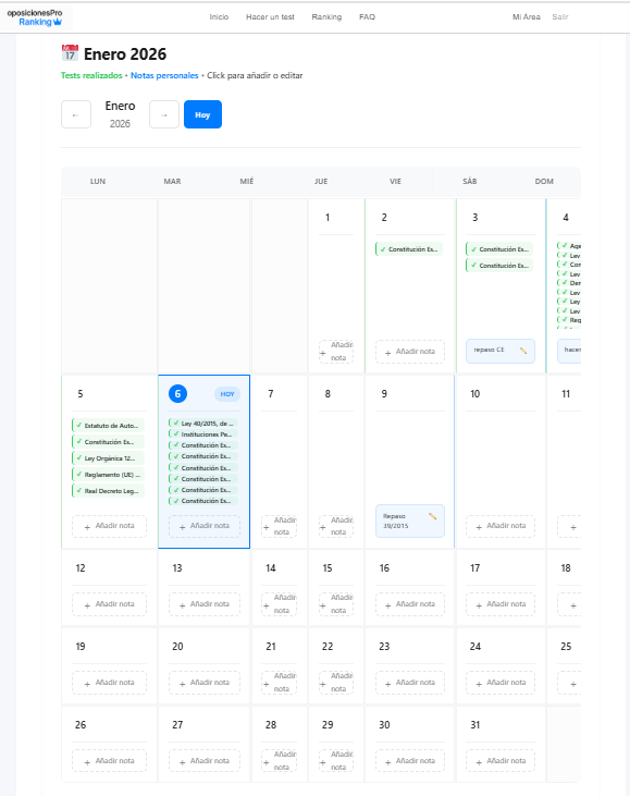 Plataforma de TEST de Exámenes oficiales, filtros avanzados por leyes y ranking de opositores.